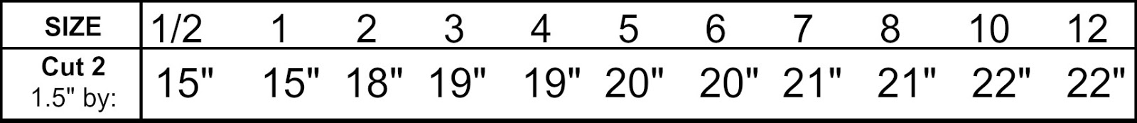Use the cut chart below for the length of bias strips.